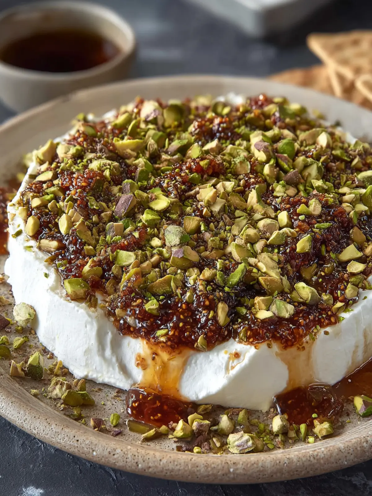 This goat cheese dip is not only a breeze to prepare, but it’s also a crowd-pleaser with its unique flavor profile. The rich creaminess of the goat cheese harmonizes perfectly with the sweet fig jam, creating a depth that entices the palate. When you add chopped pistachios, not only do you get a delightful crunch, but the nutty flavor elevates every bite.