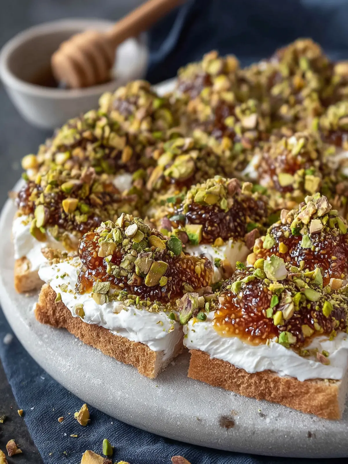 - Add the crushed pistachios on top. Optional: drizzle with honey.