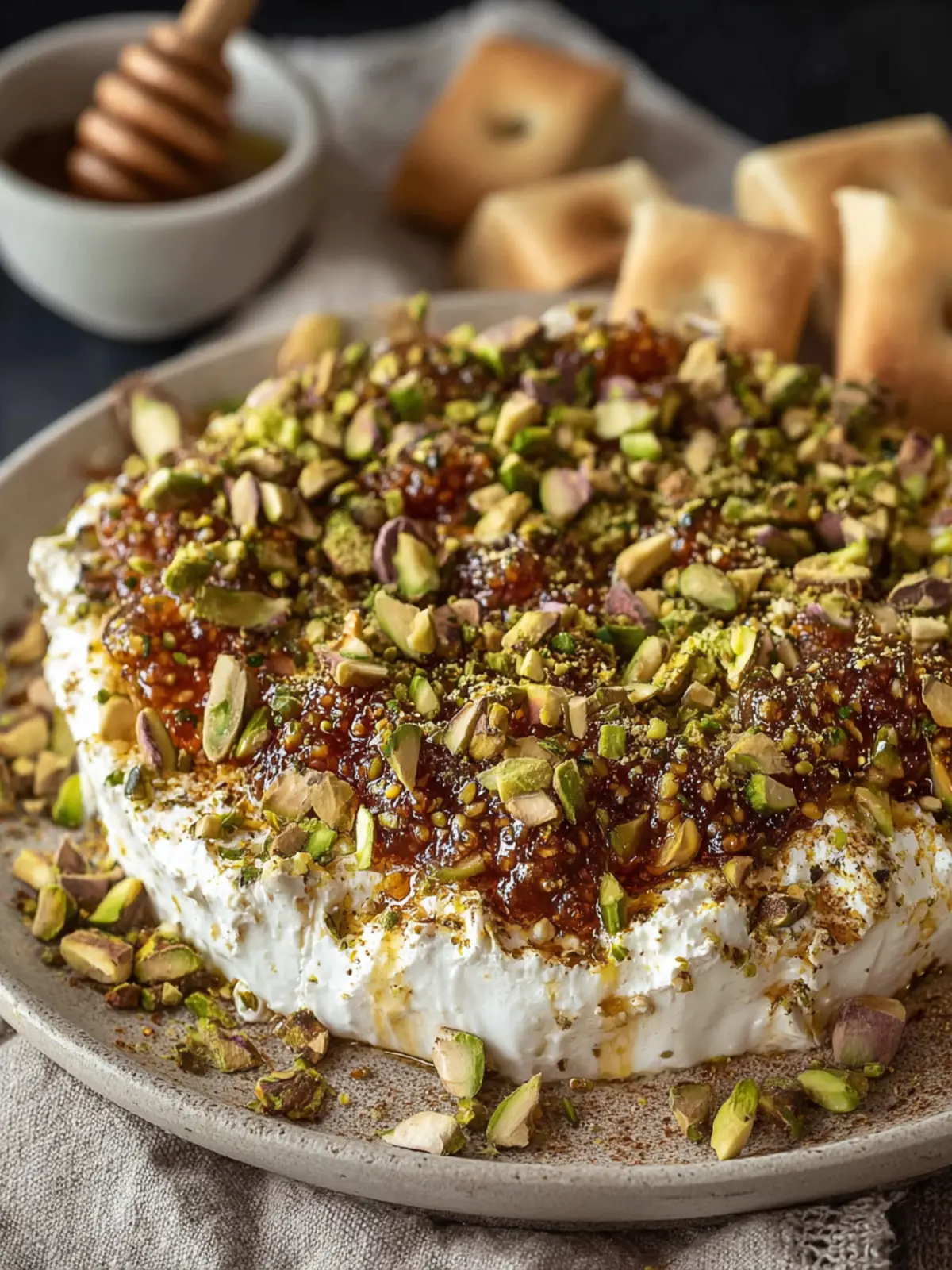 Pistachios: For an extra crunch, coarsely chopped pistachios not only add texture but also a nutty flavor that complements the dip. They provide a lovely contrast to the creamy base and make your dip visually appealing.