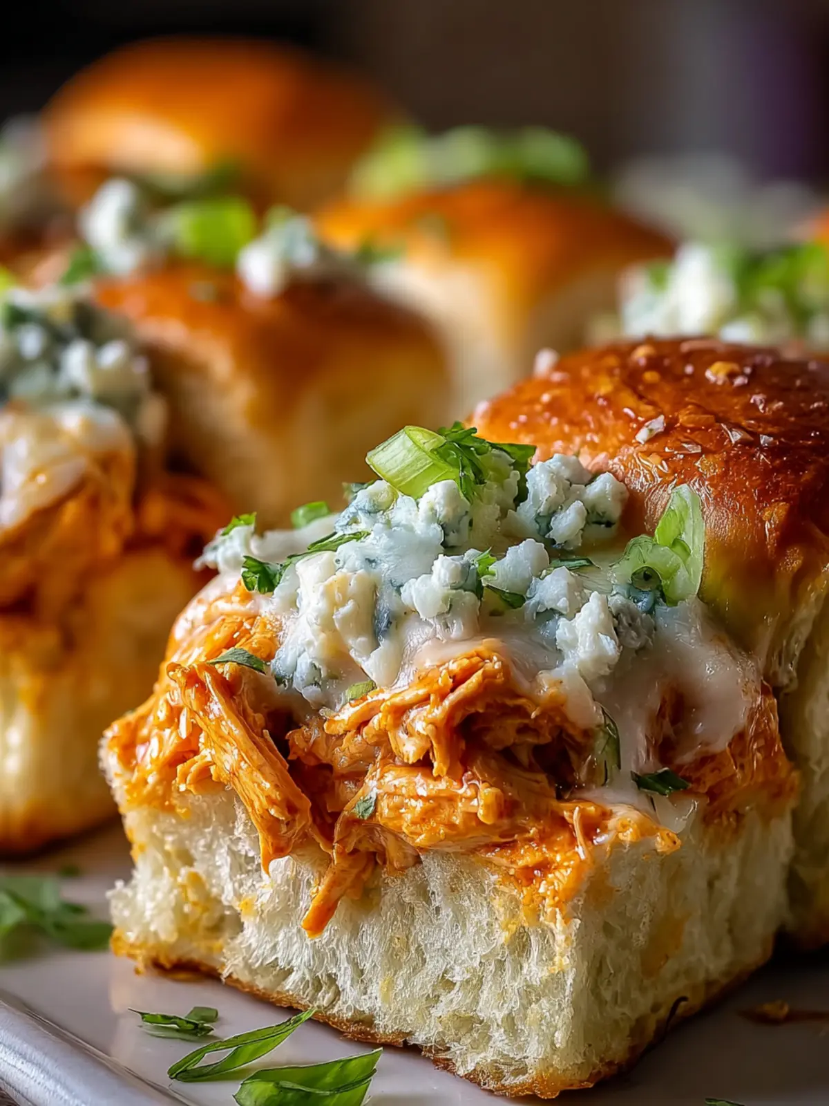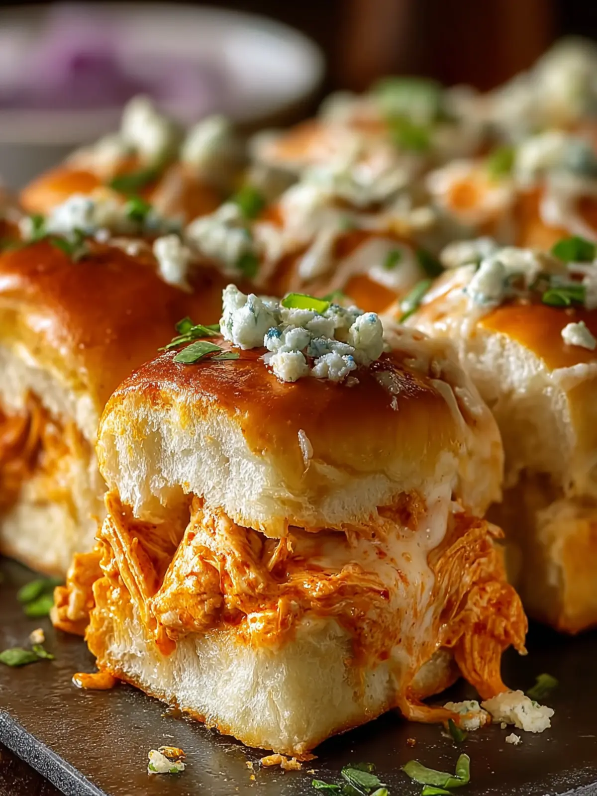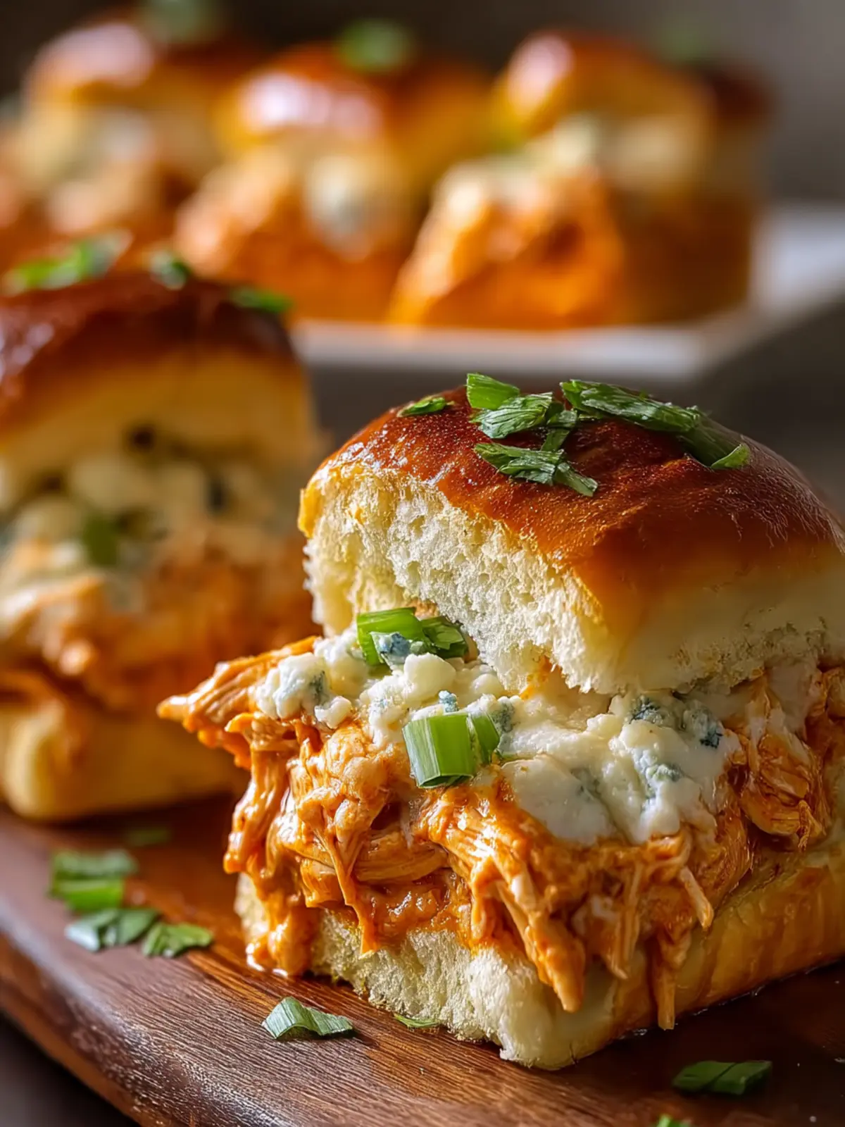 Sweet Hawaiian Rolls: The subtly sweet flavor of Hawaiian rolls enhances the spicy Buffalo sauce, making each slider a delightful treat.