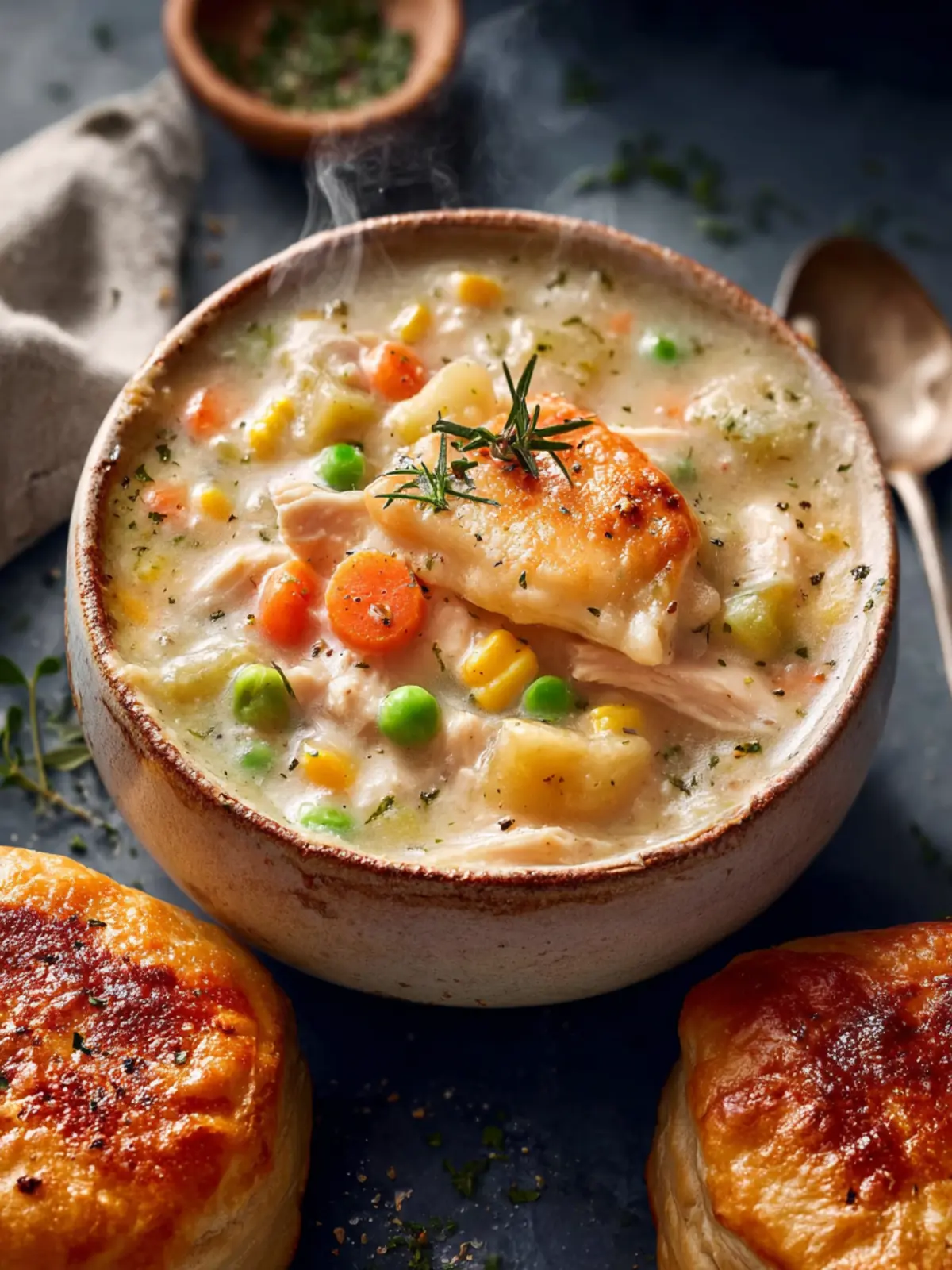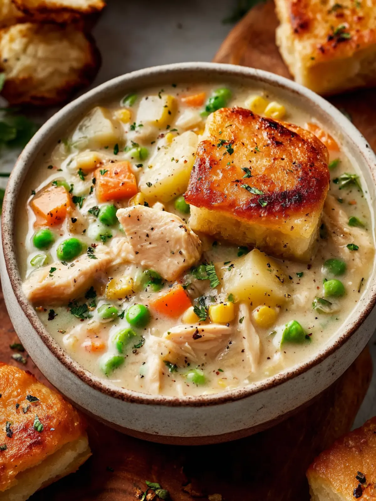 • Crusty Bread: A slice of sourdough or a buttery biscuit perfectly complements your chicken pot pie soup. The bread’s texture makes it ideal for scooping up the creamy goodness.