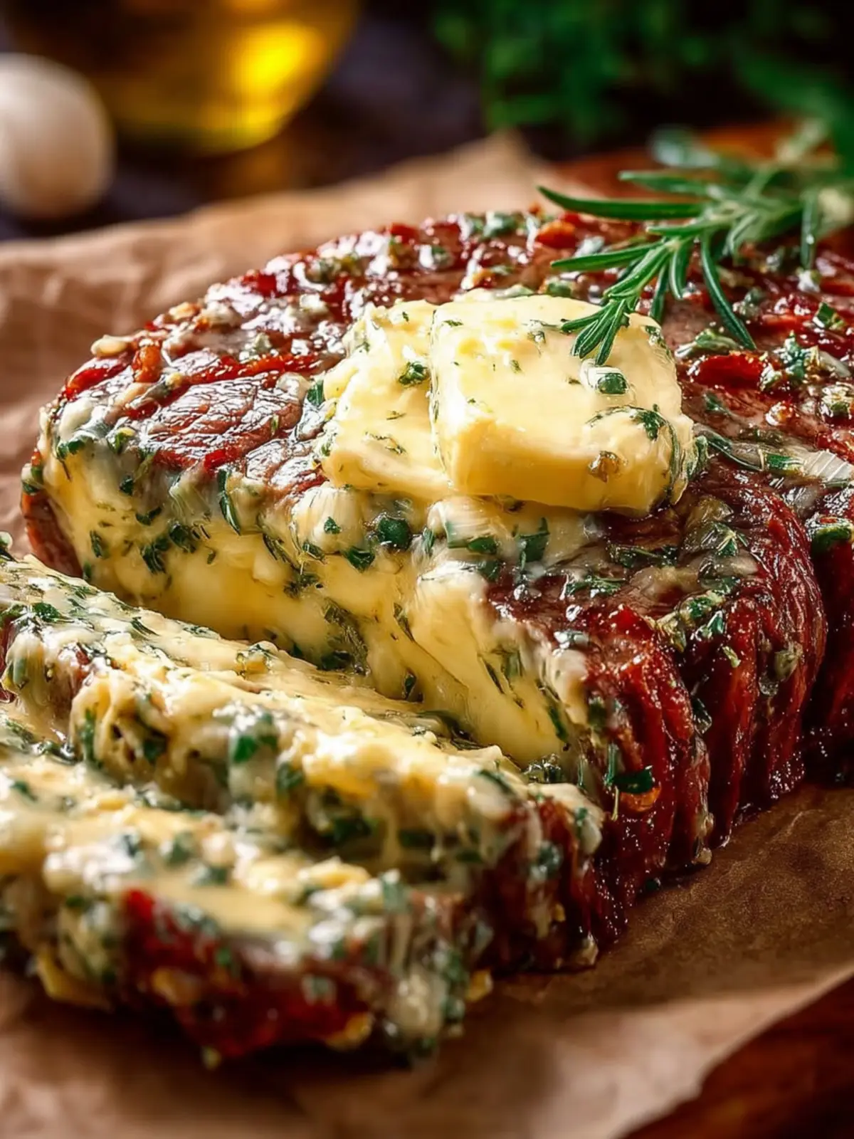 Delicious ribeye steaks topped with homemade cowboy butter for a mouthwatering experience.