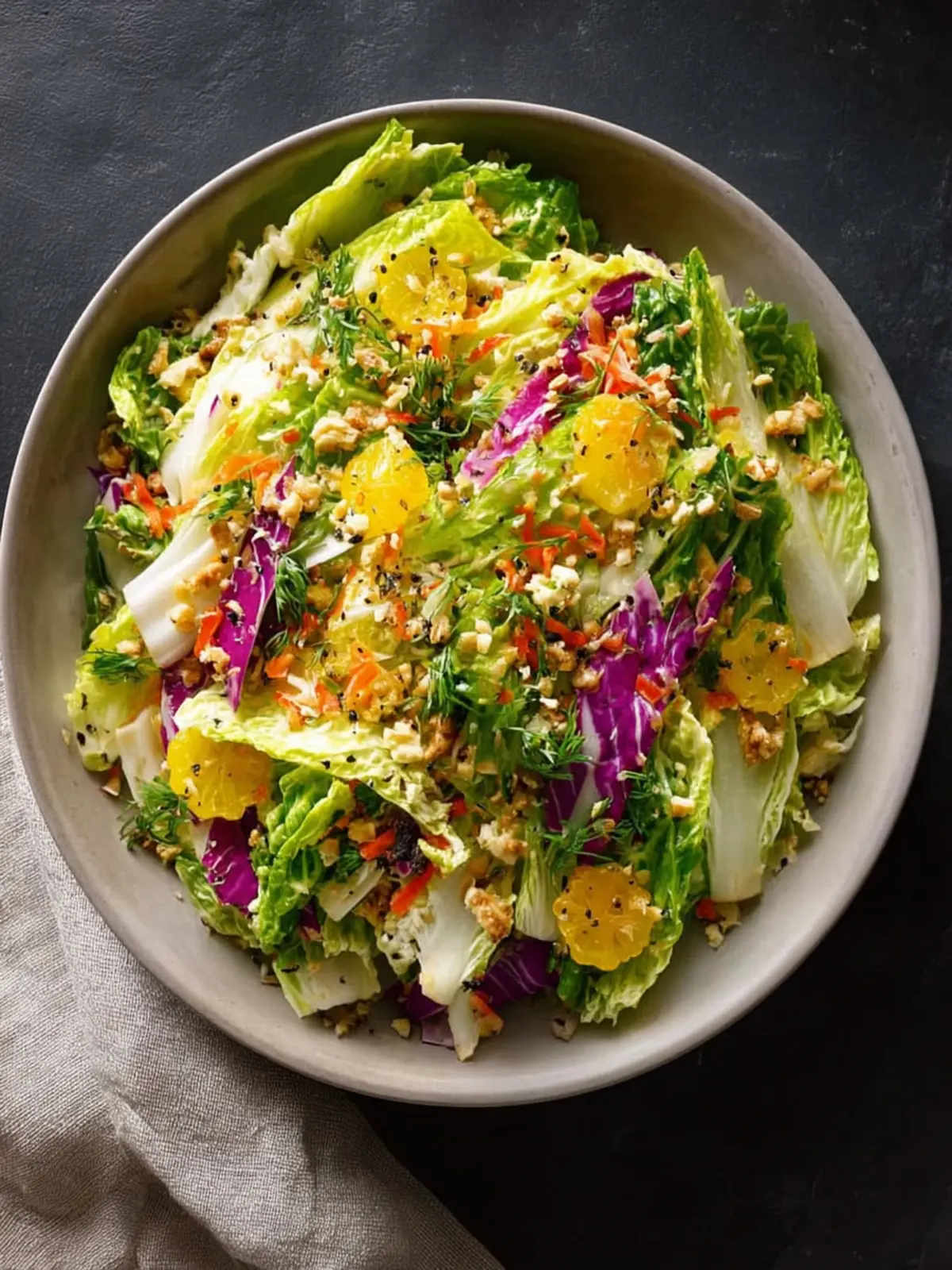 Napa cabbage, with its delicate, leafy structure and mild taste, is the star of this healthful show. Unlike the rugged texture of green cabbage, Napa cabbage offers a tender crunch that perfectly complements a wide array of dressings and toppings. As someone who appreciates both aesthetics and nutrition in their meals, I can’t help but love how versatile and visually appealing this salad can be.