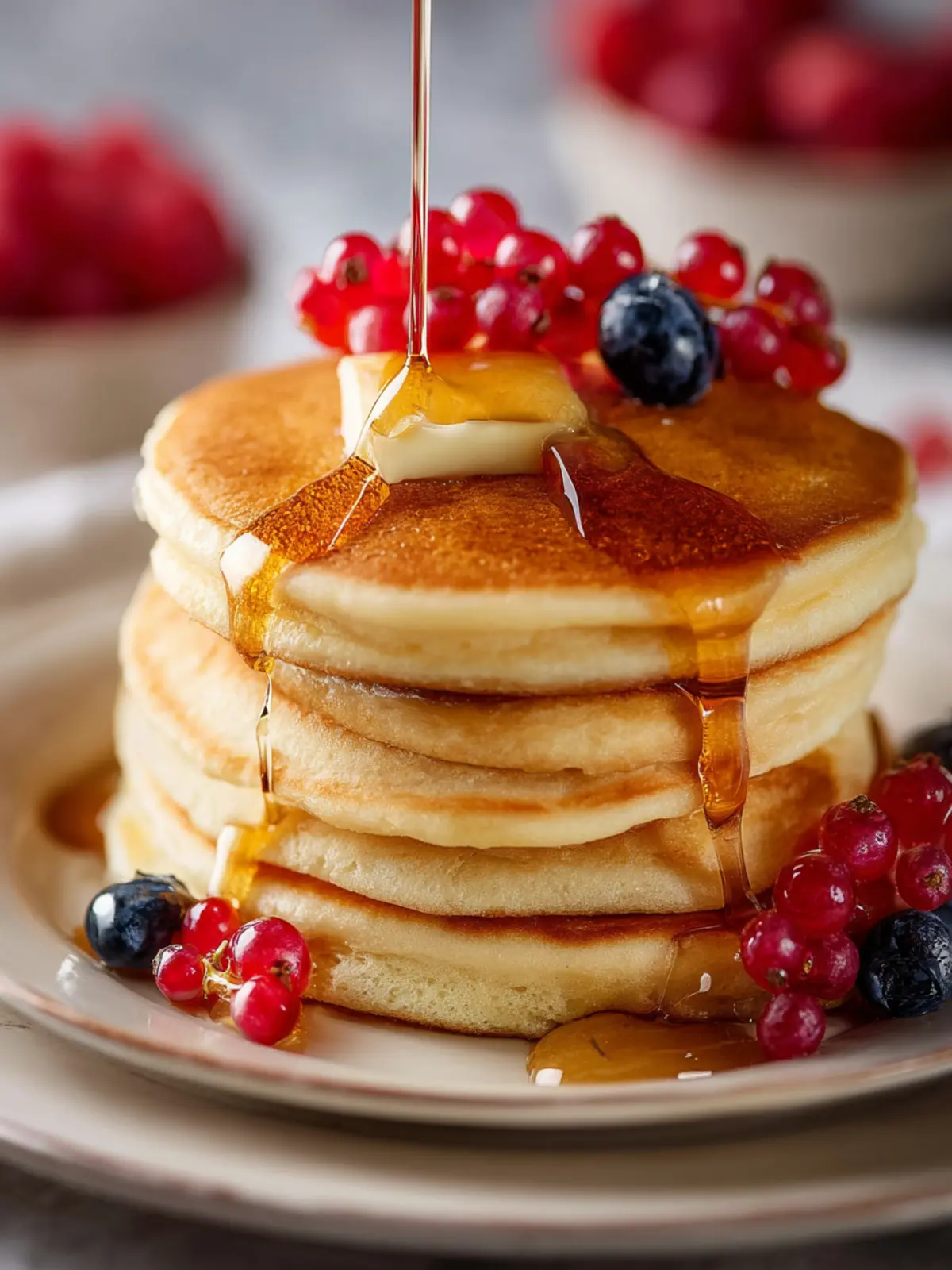 Airy Texture: The trick to achieving that dreamy fluffiness lies in the batter. By utilizing baking powder and a bit of science, these pancakes rise beautifully, making them light and airy.