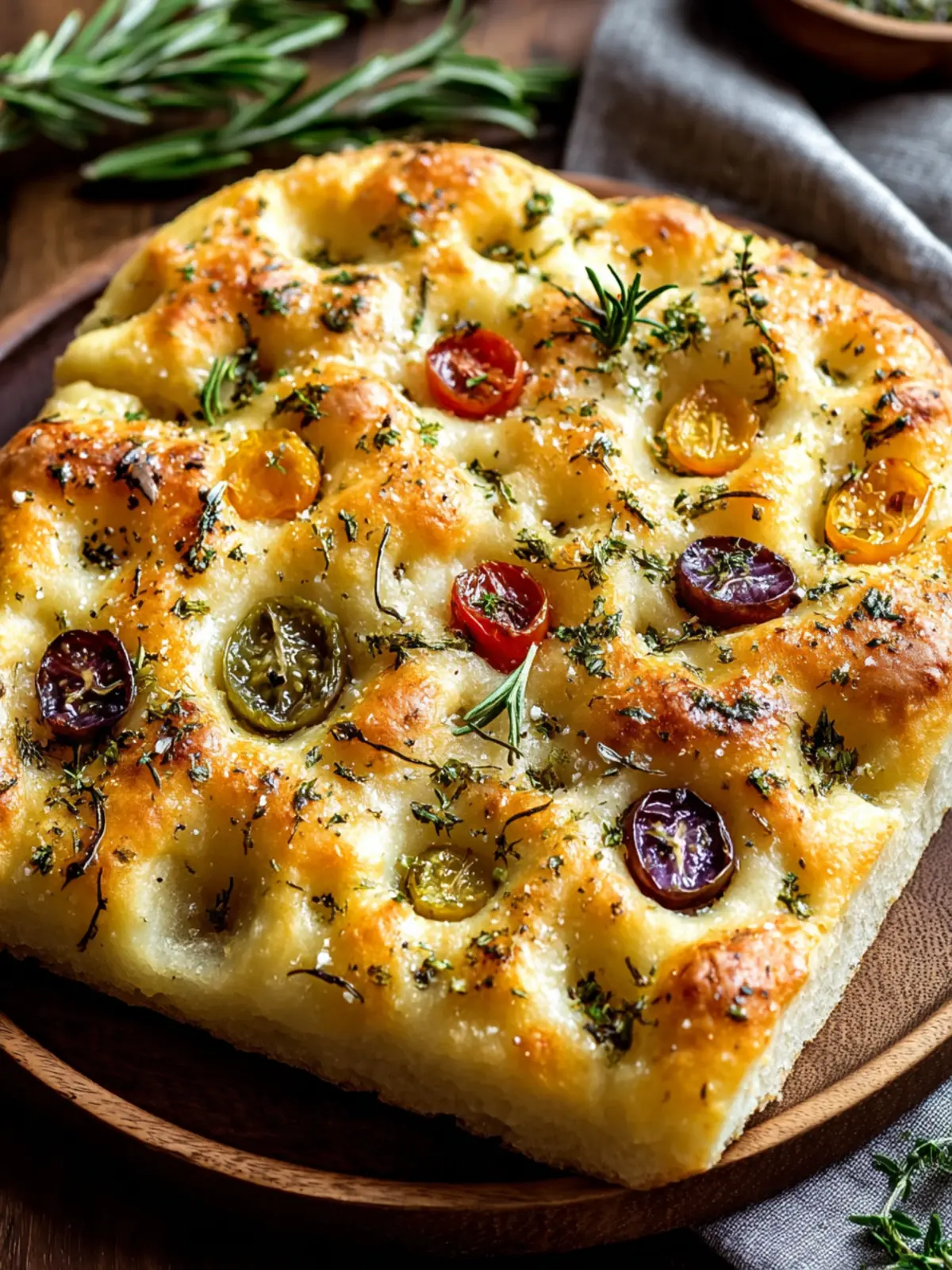 - Endless Variations: While the basic herb focaccia is delightful on its own, you can easily make it your own by adding toppings like cherry tomatoes, olives, or cheese.